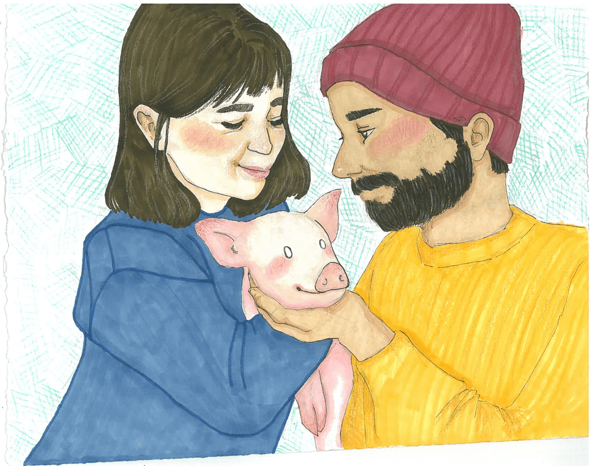 Freddie finally found her, “Did you know pigs grow substantially?”