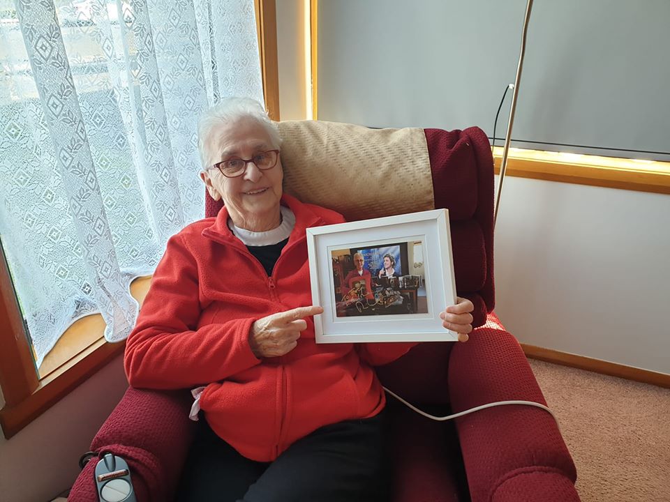 The next room that Connal went into was a huge studio set up like a brightly coloured shabby chic kitchen. He recognised one lady with short, dark red hair from other television shows that he had seen. When he realised that, standing right next to the red haired lady was his childhood pinup girl, he got very flustered. He hung about to watch her laughing and making jokes for a while before he continued on his mission.